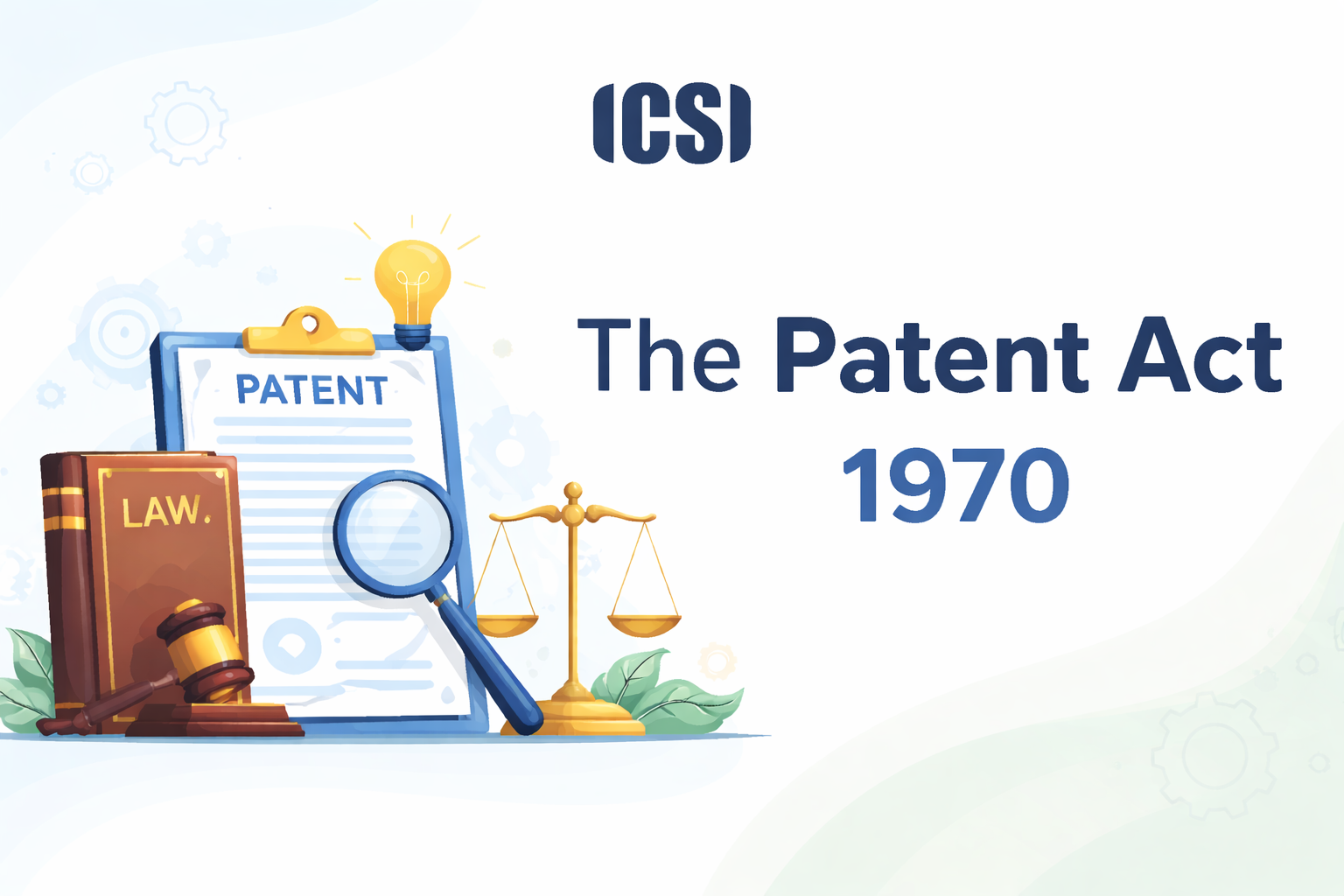 - The Patent Act, 1970, is the law that controls patents in India to date.
